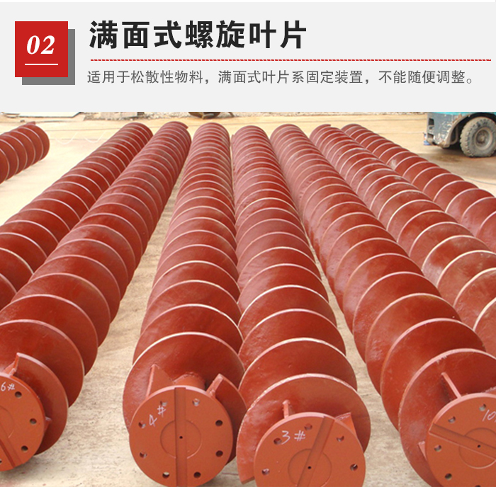 滿面式螺旋葉片/實(shí)體螺旋葉片 滿面式適用于松散性物料,滿面式葉片系固定裝置,不能隨便調(diào)整。