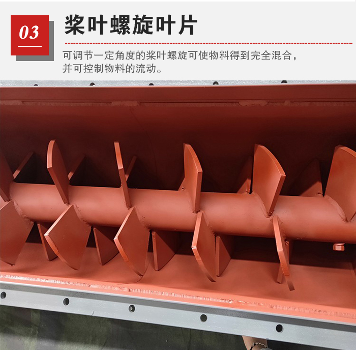 槳葉螺旋葉片可調(diào)節(jié)一定角度的槳葉螺旋可使物料得到完全混合,并可控制物料的流動(dòng)。
