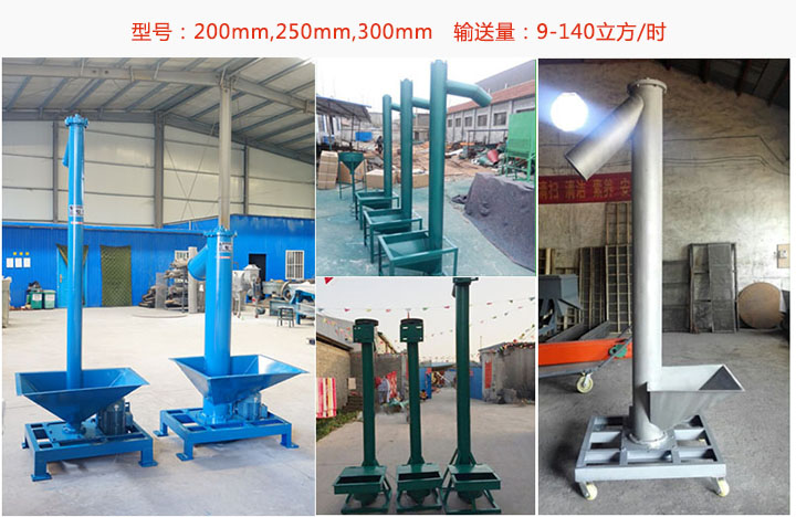 垂直螺旋輸送機有200mm,250mm,300mm三種型號選擇,輸送量在輸送量:9-140立方/時;型號不同對應的輸送量不同,型號越大輸送量越大,價格就越高;可根據想要的輸送量選擇對應的型號。