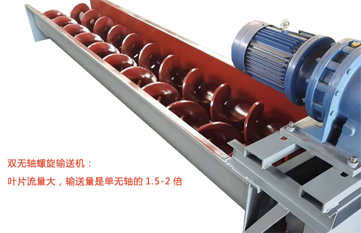 此外,想要輸送產(chǎn)量大選雙無軸螺旋輸送機(jī),雙無軸設(shè)計(jì),葉片流量大,輸送量是單無軸的1.5-2倍;