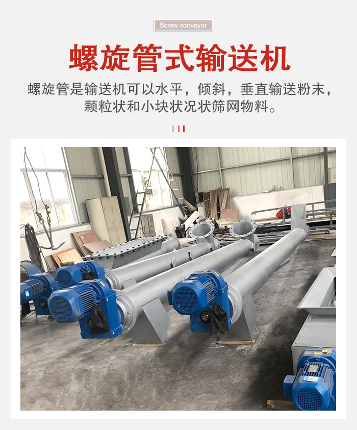 螺旋管是輸送機(jī)可以水平,傾斜,垂直輸送粉末,顆粒狀和小塊狀況狀篩網(wǎng)物料,廣泛用于糧食,建材,化工,機(jī)械制造,交通運(yùn)輸業(yè)等行業(yè)。